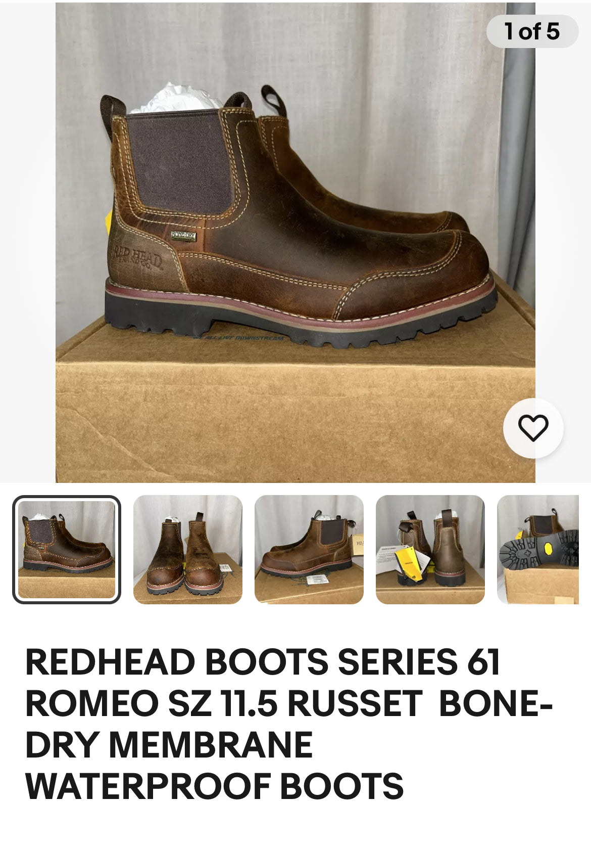 REDHEAD BOOTS SERIES 61 ROMEO SZ 11.5 RUSSET BONE-DRY MEMBRANE WATERPROOF BOOTS